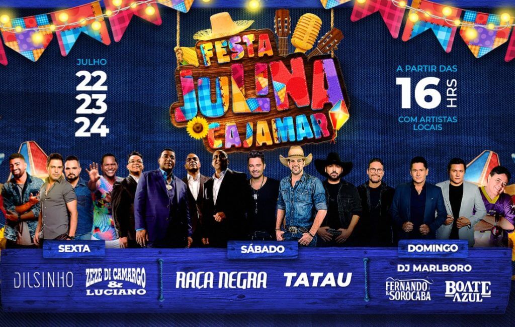 No próximo final de semana, nos dias 22, 23 e 24, acontece a tradicional Festa Julina de Cajamar. O evento contará com barracas de alimentos e bebidas, estações com diversas brincadeiras, brinquedos infláveis para as crianças e shows com artistas renomados.