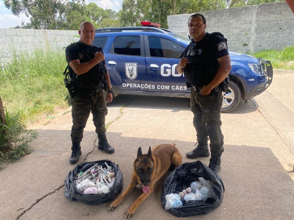 Após alguns minutos de busca, Thor indicou um ponto específico no terreno, levando os agentes até um buraco encoberto. No interior, foi encontrado um saco de lixo preto repleto de entorpecentes prontos para distribuição. Ao todo, foram apreendidos: