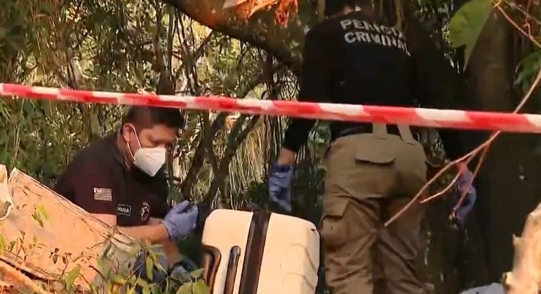 Os policiais se depararam com um corpo esquartejado enrolado em lençol, uma mala e uma caixa de isopor. No interior da mala foram encontrados alguns membros e a cabeça. O homem aparentava ter menos de 30 anos, usava camiseta e bermuda.
